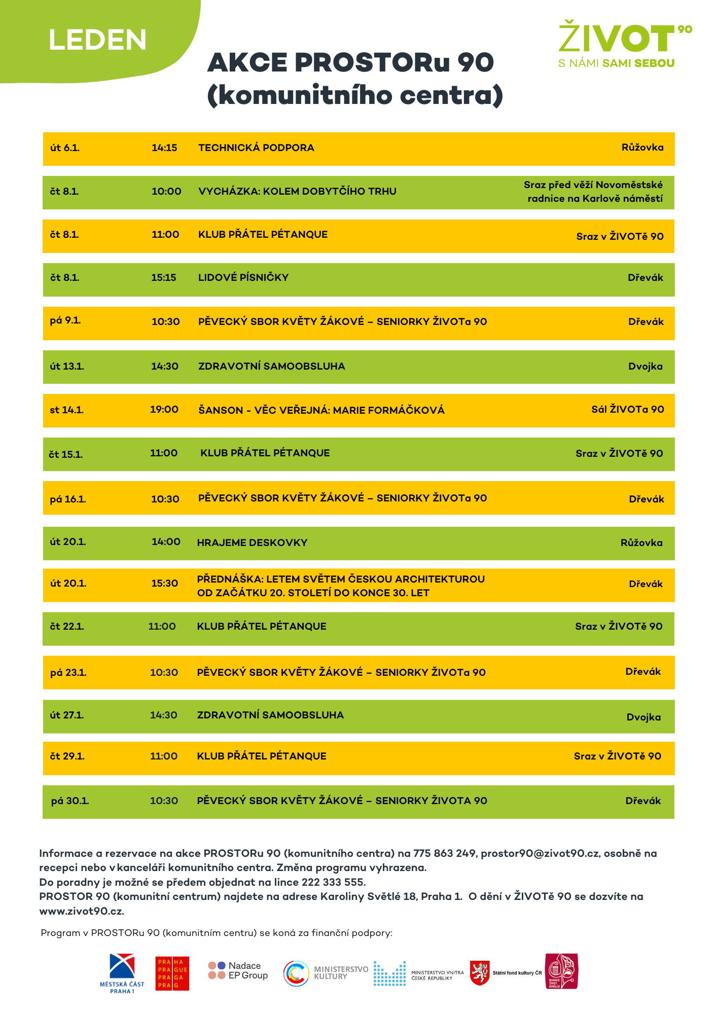 S novým rokem přichází i nové aktivity v PROSOTRu 90! Můžete se těšit na zajímavé aktivity, milá setkání a další pestrý program.